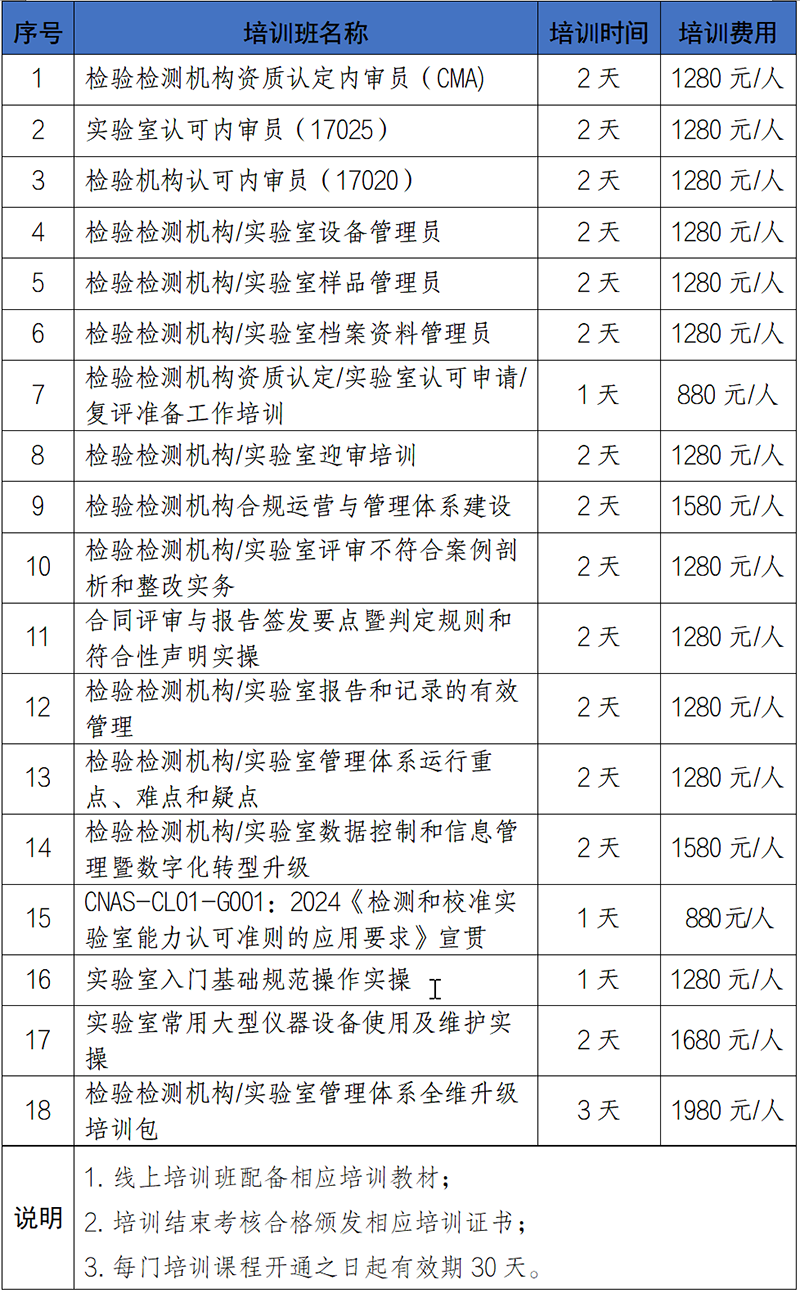 2026年度检验检测机构/实验室培训计划已发布!
